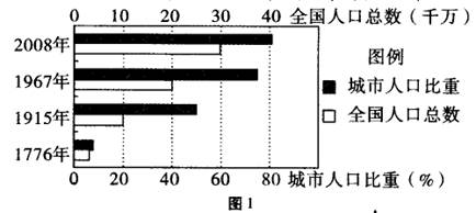 图1为某国人口增长和城市人口比重统计图,读图回答l~3题。