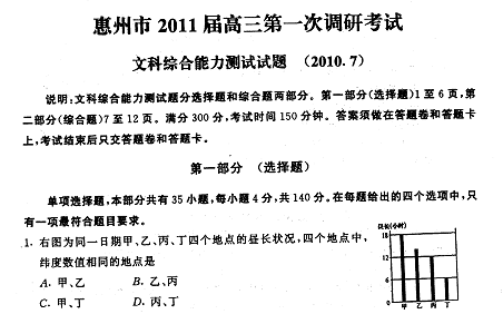 惠州市2011届高三第一次调研考试文科综合试题及答案广东省惠州市2011届高三第一次调研考试文科综合试题及答案