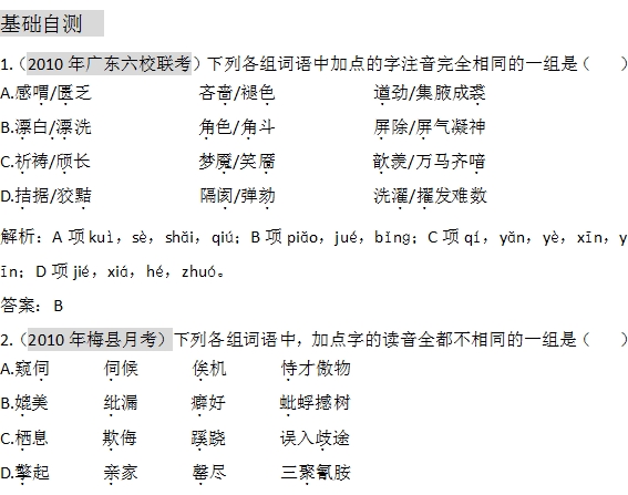 百度:广东2011年高考语文一轮复习专项训练:第一章 第一节《识记现代汉语普通话常用字的字音》