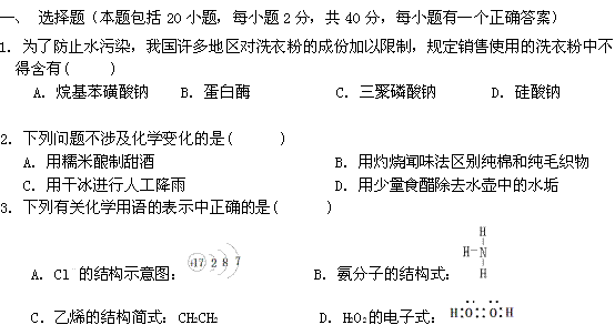 百度:四川省攀枝花市米易中学09-10学年高二6月月考(化学)