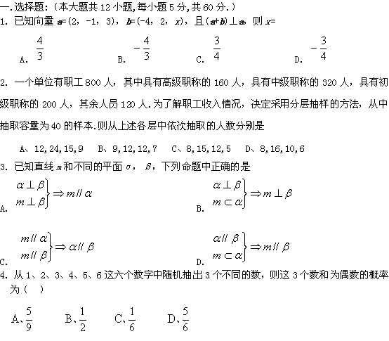 有道:四川省攀枝花市米易中学09-10学年高二6月月考(数学文)