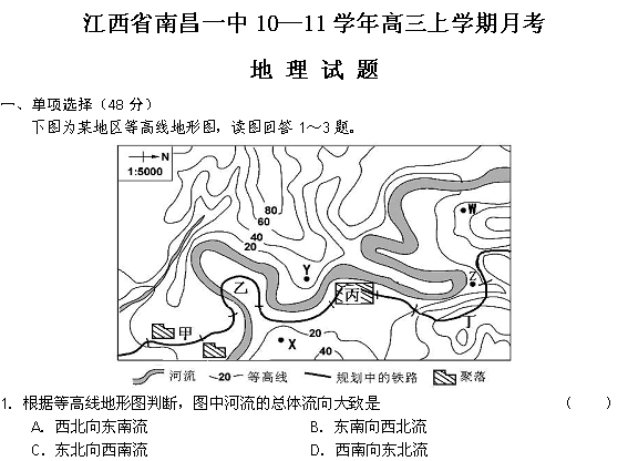 2011南昌一中高三月考地理