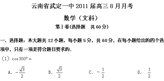 云南省武定一中2011届高三8月月考(数学文)