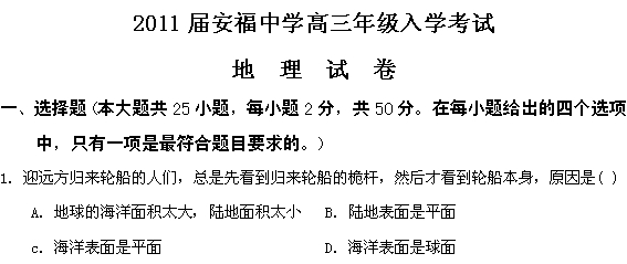 谷歌:江西省安福中学2011届高三入学考试(地理)