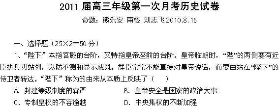 有道:江西省上高二中2011届高三第一次月考(历史)