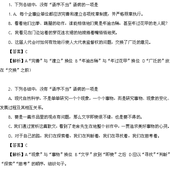 有道:2011语文一轮复习学案:语序不当、残缺、赘余