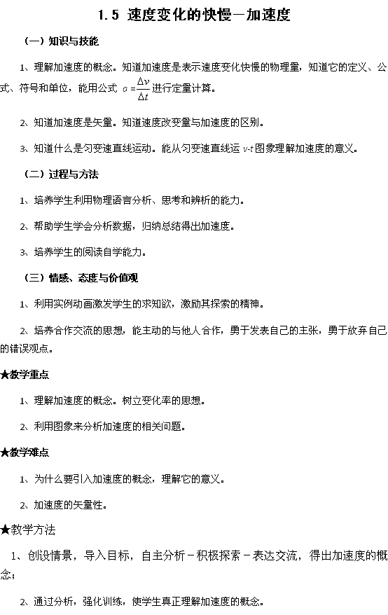 谷歌:物理精华教案:速度变化的快慢——加速度