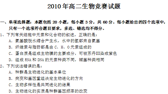 百度:广东省高州一中2009-2010学年高二学科竞赛(生物)