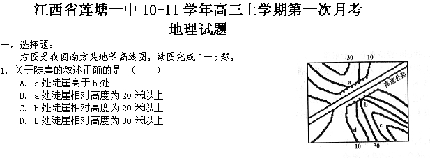 百度:2011届江西省莲塘一中高三上学期第一次月考(地理)
