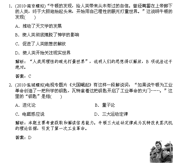 有道:历史大象版2011届高三复习练习用题:物理学的长足进步、破解生命起源谜团的进化论及从蒸汽时代到互联网时代