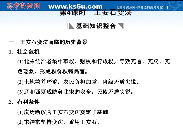 有道:历史大象版2011届高三复习课件:王安石变法