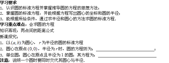 数学:2.3.1《圆的标准方程》学案(新人教版必修2)