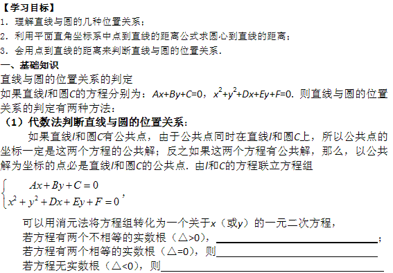 谷歌:数学:2.3.3《直线与圆的位置关系》学案(新人教版必修2)