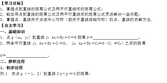 谷歌:数学:3.3.3《点到直线距离和两条平行直线间的距离》学案(新人教版必修2)