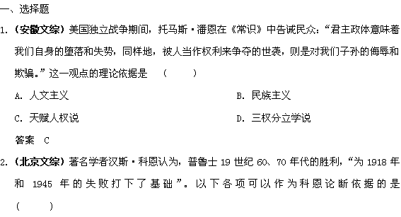 百度:历史试题:专题三 欧美资产阶级代议制的确立与发展