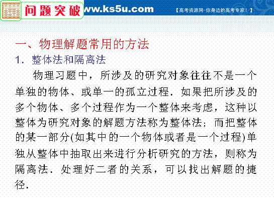 百度:2011届高考物理二轮复习第22讲 专题10A物理解题方法与技巧(物理解题常用的方法)