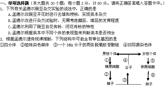 谷歌:【KS5U首发】安徽省蚌埠二中2011年高二第一次质检(生物)