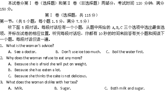 百度:【KS5U首发】安徽省蚌埠二中2011年高二第一次质检(英语)