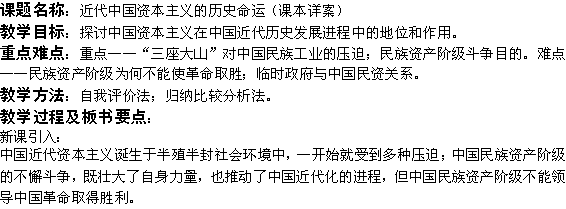 2011高一历史学案:07:近代中国资本主义的历史命运(教学练案)(人民版必修2)