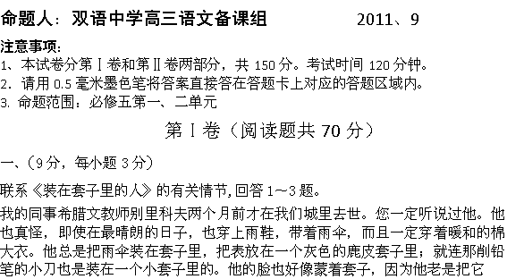 百度:安徽省泗县双语中学2011-2012学年高二9月月考(语文)