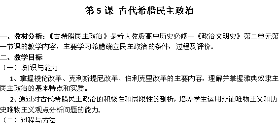 百度:山东省临清市高中历史教学案(必修一):第5课 古代希腊民主政治