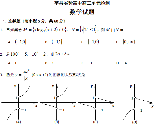 有道:山东省莘县实验高中2012届高三9月月考 数学试题 缺答案