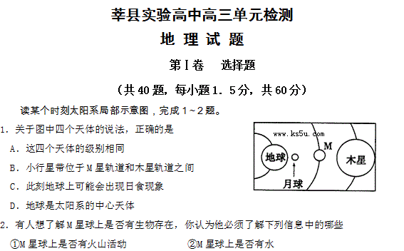 百度:山东省莘县实验高中2012届高三9月月考 地理试题
