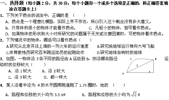 百度:河北省藁城一中2011-2012学年高一上学期9月月考(物理文)缺答案