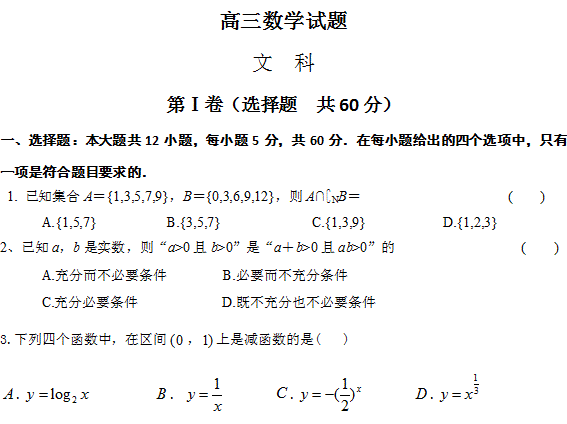 百度:山东省潍坊市2012届高三10月三县联合考试 数学文科试题