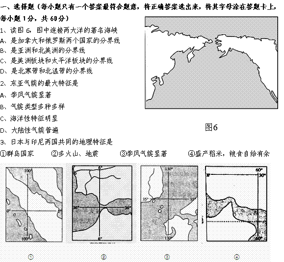 百度:河北省藁城一中2011-2012学年高二上学期9月月考(地理)缺答案