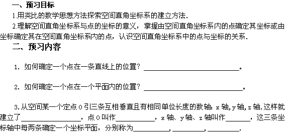 谷歌:山东省临清市高中数学全套学案必修2:4.3.1 空间直角坐标系