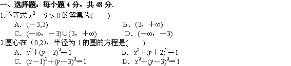 百度:四川省绵阳南山中学11-12学年高二10月月考试卷(数学文)