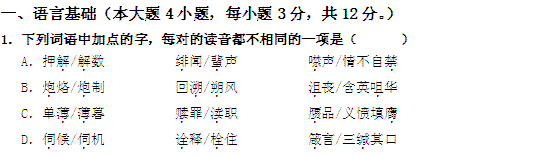 百度:【KS5U首发】广东省梅县东山中学2012届高三第二次月考试题语文