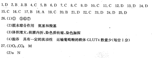 有道:【KS5U首发】湖北省100所重点中学2012届10月高三联合考试(生物)答案