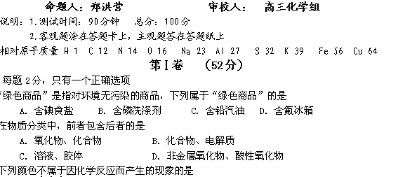 谷歌:【KS5U首发】辽宁省沈阳二中2012届高三上学期10月月考(化学)