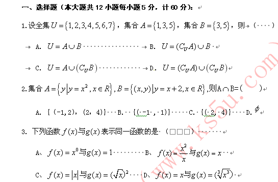 谷歌:辽宁抚顺高级中学2011-2012学年度高一上学期10月月考(数学)