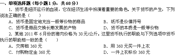 百度:四川省绵阳中学11-12学年高二上学期入学考试(政治)无答案