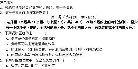 百度:安徽省濉溪县临涣中学11-12学年高一第一次月考(物理)