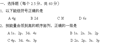 百度:重庆市万州二中11-12学年高二10月月考(化学)