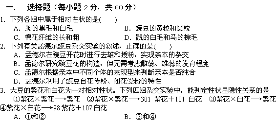 百度:河南省郑州市四十七中11-12学年高二第一次月考(生物)