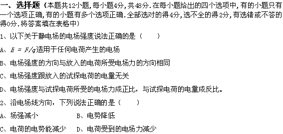 百度:河南省郑州市四十七中11-12学年高二第一次月考(物理)