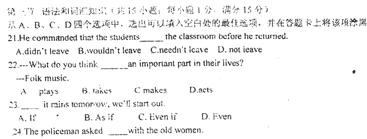 百度:山东省泰安市新泰一中南区11-12学年高一大单元测试英语试题(PDF版)