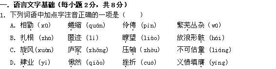 百度:四川省绵阳中学实验学校11-12学年高二上学期入学考试(语文)无答案