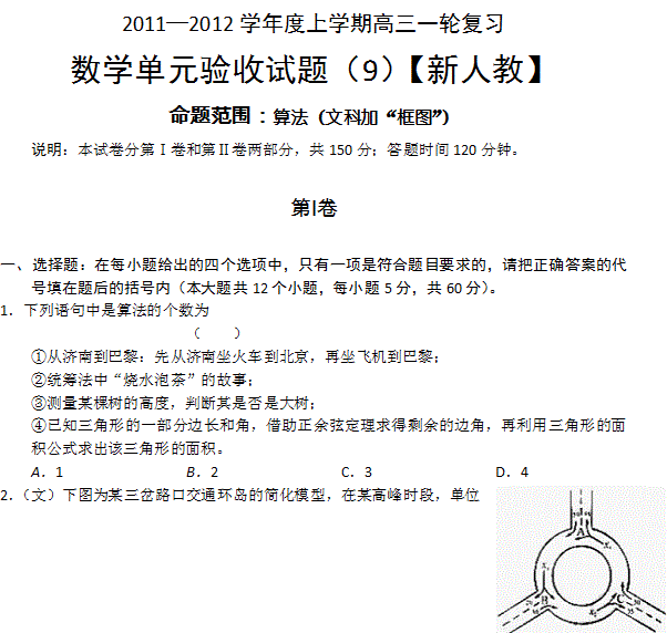 百度:2011-2012学年新课标版高三上学期单元测试(9)(数学)