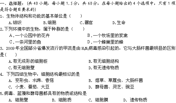 百度:【KS5U首发】河南省镇平一高11-12学年高二上学期第一次月考试(生物)缺答案
