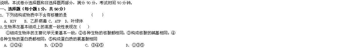百度:黑龙江省大庆实验中学2012届高三10月月考(生物)
