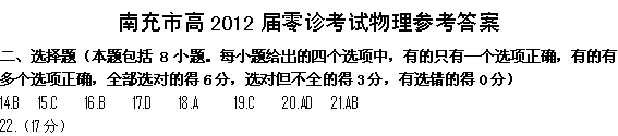 谷歌:四川省南充市2012届高考适应性考试(物理)答案(2012南充零诊)