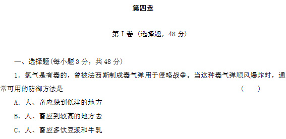 有道:青海省2012届高三化学复习课时训练:第4章 卤素 综合测试