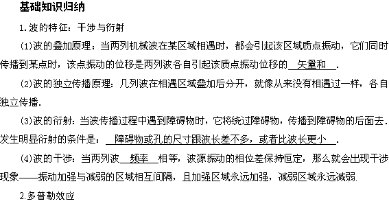 谷歌:2012届高考物理一轮复习学案:11.4波的反射、折射、干涉、衍射及多普勒效应