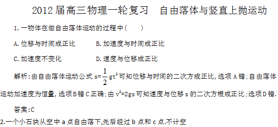 谷歌:贵州省2012届高三物理复习测试:8自由落体与竖直上抛运动